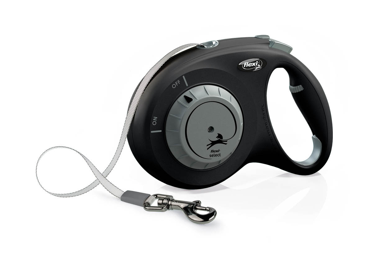 The first flexi® retractable leash with a maximum retractable length that can be infinitely adjusted between 0 and 23 feet: